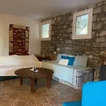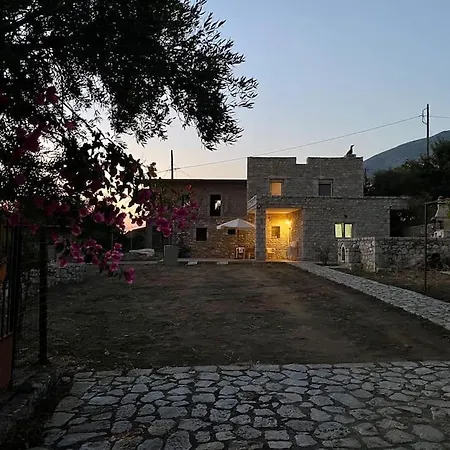 Guests can enjoy a seaside sea view from a terrace at Potis Stone House Villa Akia, 10 minutes' drive from Glyfada Cave.